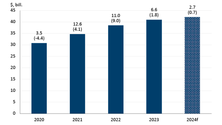 In aggregate, 2024 margins will improve from 2023 (Figure 2), but the results will differ greatly depending on the type of meat and region. Pork processing margins will improve, but relative to a difficult 2023. Beef processors' margins will be positive, but competition for live cattle will remain fierce for the foreseeable future given the small North American herd size. Poultry processors must deal with the high levels of frozen inventory and flatlining demand.