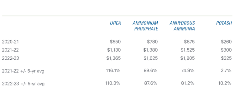 Table 2: Average fertilizer prices ($/tonne) projected to remain high in 2022