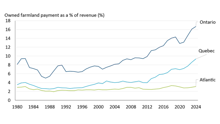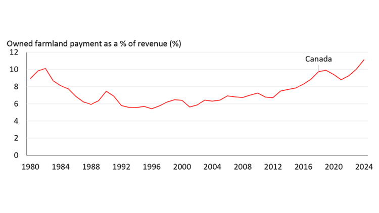 Figure 4: Owned farmland payment as a percentage of revenue in Canada is the worst on record