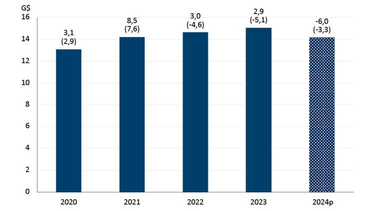 Pour 2024, les Services économiques FAC prévoient une diminution des ventes (-6,0 %) et des volumes (-3,3 %). Il s’agirait de la troisième année consécutive de baisse des volumes pour ce secteur. On prévoit que les ventes et les volumes de boissons alcoolisées (tous types confondus) diminueront en 2024, tandis que les ventes du secteur de la fabrication de boissons gazeuses et de glace devraient augmenter.