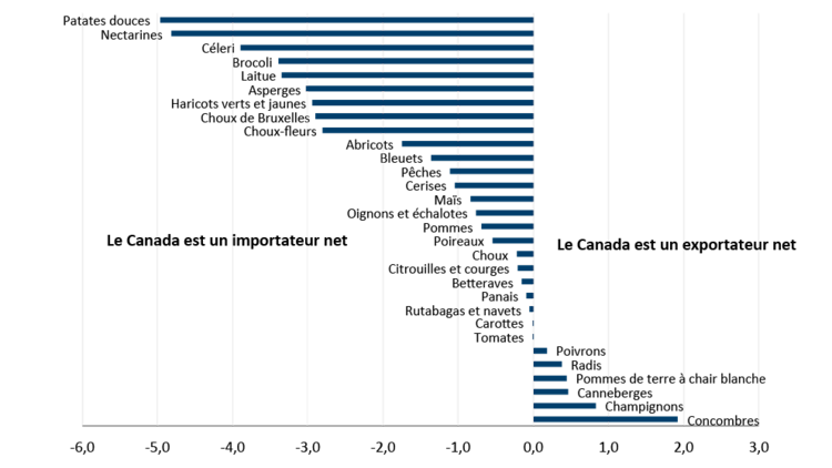 Figure 1 : Le Canada est un importateur net de nombreux fruits et légumes frais