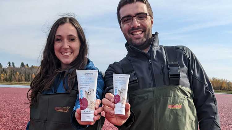“You might think the dental gel is cranberry flavoured,” says Andrée-Ann Adam, president and co-founder of Animora, “but it’s actually the active ingredient. We use cranberries in our product because of its oral health benefits and not for its taste.”