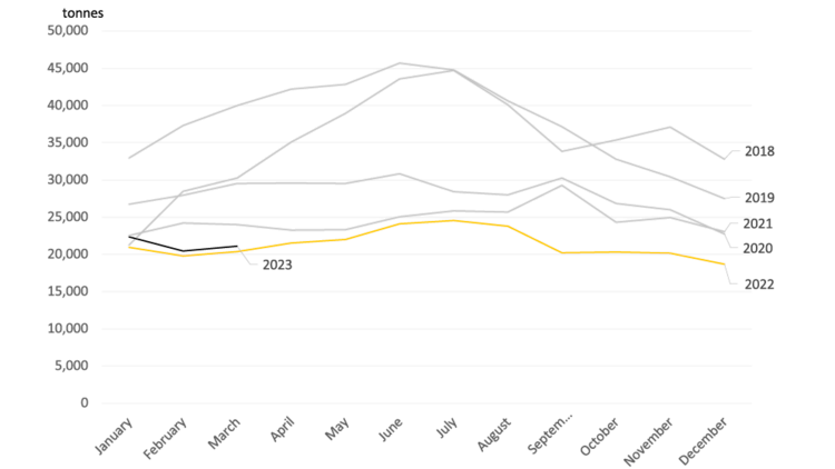 Figure 1: Butterfat composition in the WMP unseasonably high to start 2023